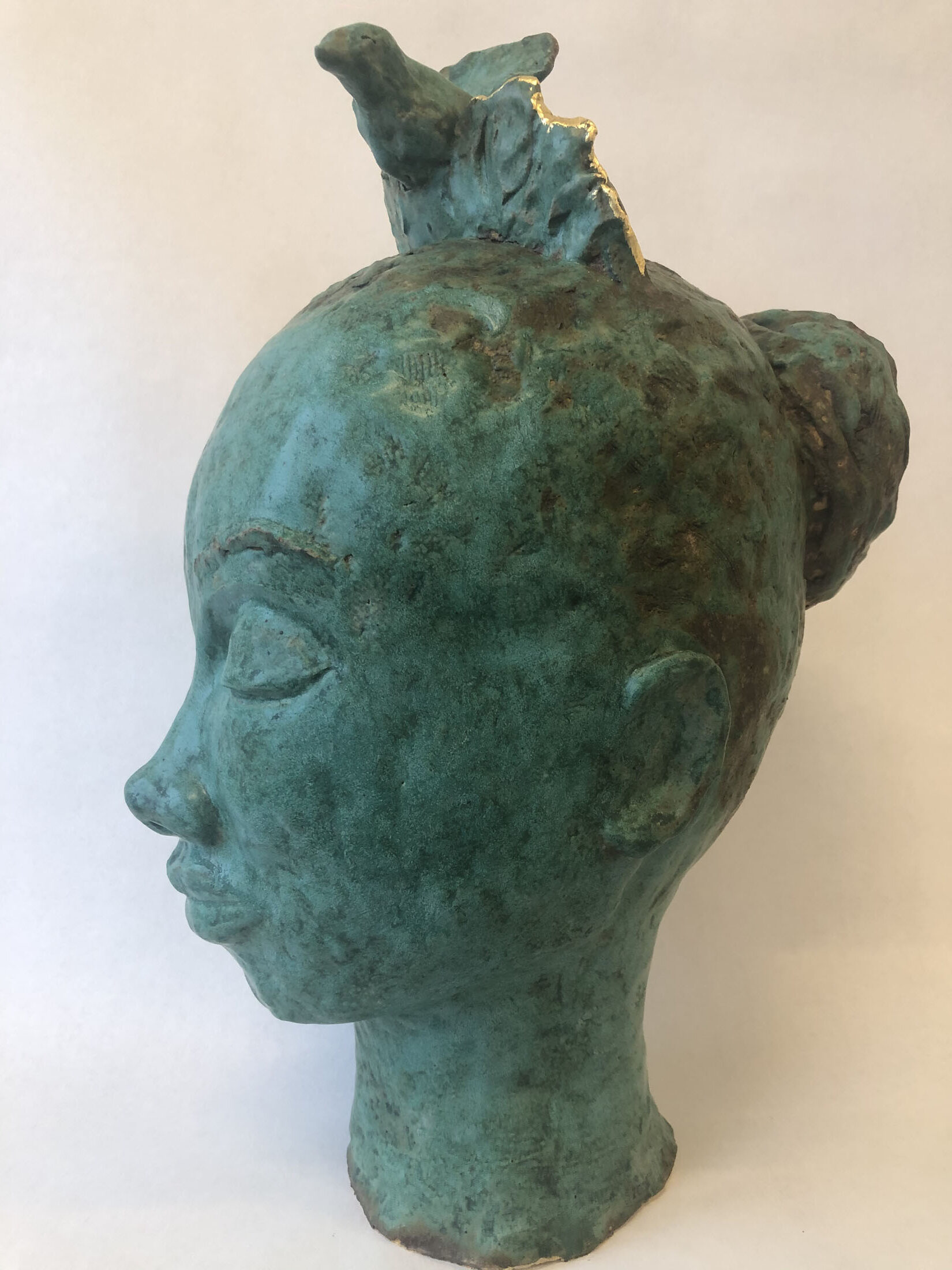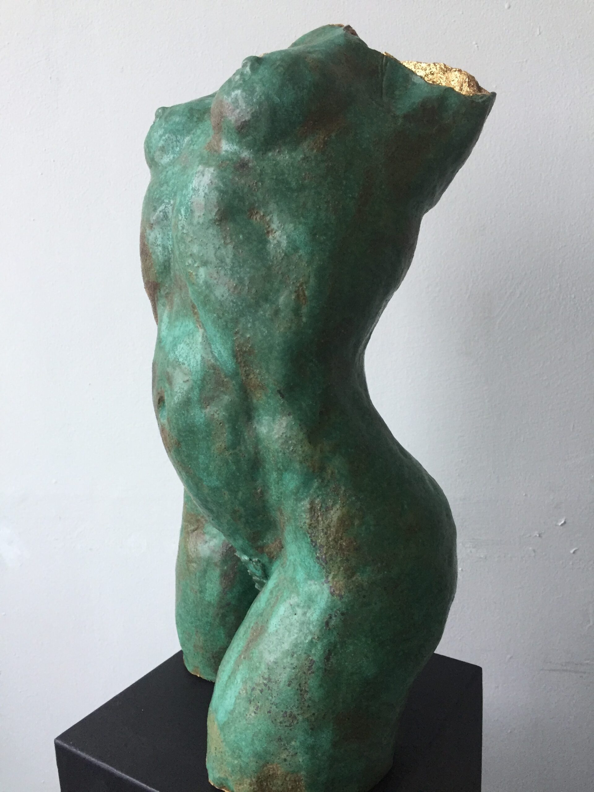 turquoise torso with gold leaf – sold 22″ h x 12″ w